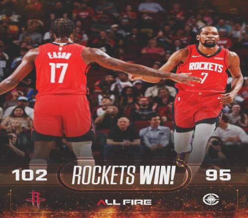 第四節開始,謝潑德組織進攻,芬尼-史密斯鐵樹開花,火箭一波7-0拉開到兩位數。快船進攻斷電,最後1分50秒謝潑德底角三分殺死比賽。全場結束,火箭102-95擊敗快船。明天上午9點,兩隊背靠背再打一場,依然是火箭主場。