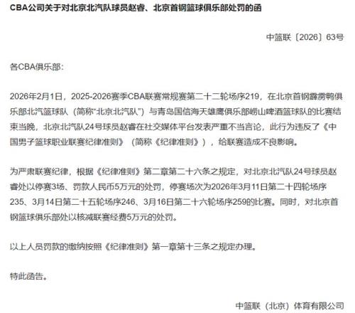 該來的總會來,不久前,在北京男籃輸給青島隊比賽之後,趙睿在社交媒體與球迷互動時發表涉及地域歧視的言論,引發輿論的廣泛聚焦和部分新疆球迷的強烈不滿。北京時間2月11日晚上,中國籃協公布了對趙睿的罰單:停賽三場罰款五萬,北京首鋼也因此被罰款五萬。如何評價籃協的這一罰單呢?四個字:避重就輕。