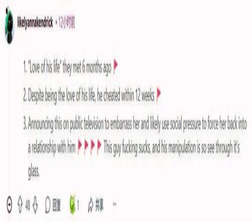 他公開宣布這件事,讓她難堪,很可能是想利用社會輿論壓力逼她回到他身邊。這家夥真是太爛了,他PUA的手段一眼就能看穿。”