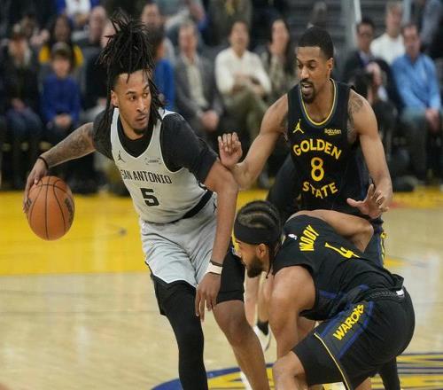 進入末節爭奪,巴恩斯、哈珀、文班亞馬又打出12-2攻擊波一口氣建立起兩位數領先,波斯特3分止血後,瓦塞爾、約翰遜連續得分回應,兩隊圍繞10分分差展開拉鋸戰,最終勇士追分無果,馬刺完成大逆轉豪取6連勝。