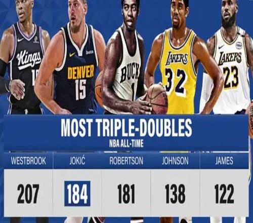 此役後約基奇已經完成184次三雙,他距離威少207次隻差24次,而且威少已經37歲夕陽西下大概率本賽季打完就要退役,約基奇大概率1-2年後就可以超過威少的三雙次數成為新的曆史第一。