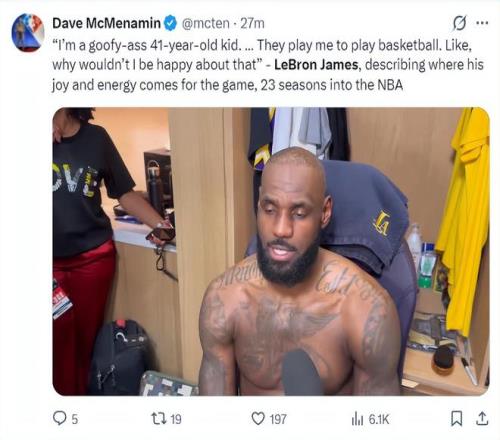 賽後詹姆斯接受采訪:我就是一個41歲的老咕嚕棒子,我就是登場打球,他們願意付錢讓我打球,我有什麽理由不高興呢?(這句話大概率已經說明詹姆斯對湖人管理層失誤了)