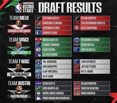 裏弗斯隊的半決賽對手是卡梅隆·安東尼執教的球隊,這支隊伍堪稱本屆賽事的最大奪冠熱門。陣中擁有2025年狀元秀庫珀·弗拉格,這位達拉斯獨行俠新星本賽季場均貢獻20.4分、6.6個籃板和4.1次助攻;多諾萬·克林根作為楊瀚森的隊友,本賽季已經成為球隊的首發中鋒,這位二年級中鋒本賽季場均貢獻11.4分11.4籃板的兩雙數據,排名聯盟籃板榜第三。此外,去年最佳新秀得主斯蒂芬·卡斯爾也在這支隊伍中,本賽季他在馬刺場均貢獻16.5分、7次助攻和5個籃板,展現了全麵的組織能力。