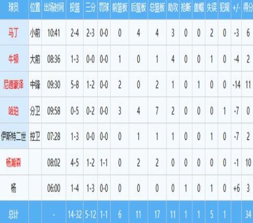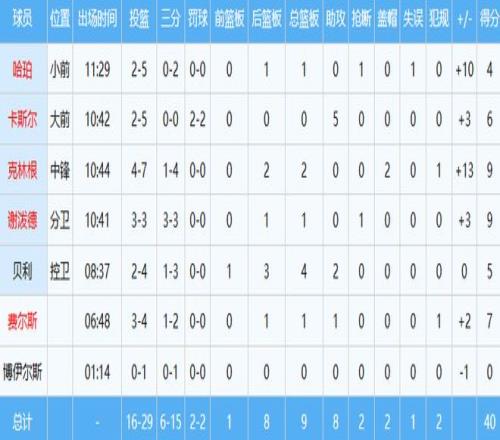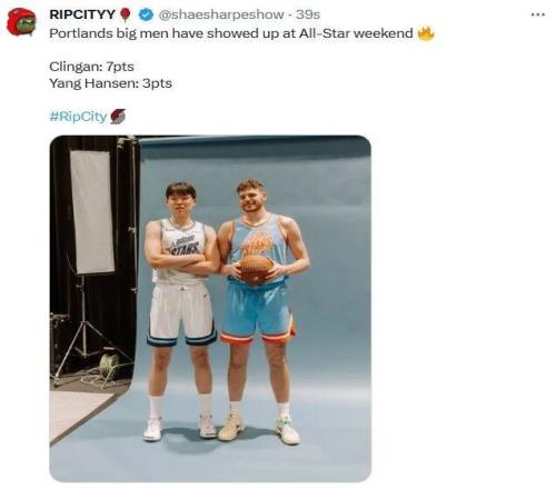 本賽季至今,楊瀚森出戰34場首發1次,場均上陣7.5分鍾,得到2.2分1.6板0.6助,三項命中率29.8%、13.5%和95%;克林根出戰52場全部首發,場均上陣27.6分鍾,貢獻11.6分11.5板(4.7前場板高居聯盟榜首)2.1助1.4帽,三項命中率52.6%、32.1%和67.4%。