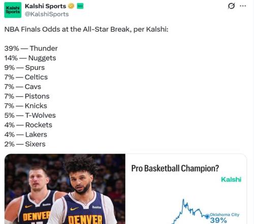 NBA最新奪冠概率出爐!短板明顯的火箭隊與湖人隊皆為4%,騎士拿下哈登後7%屈居第4,第一雷霆39%概率斷檔領跑。