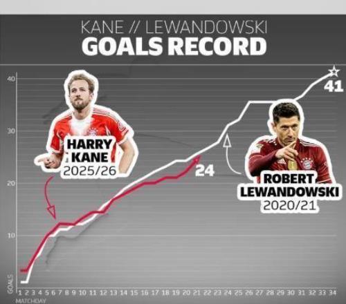 更恐怖的是效率,凱恩僅用405場比賽就達成了301球,場均0.74球。在英超賽場,他320場轟入213球;轉戰德甲後更是如有神助,85場打進88球,效率遠超英格蘭時期。本賽季他在德甲已打入24球(注:根據多個搜索結果更新為26球),領跑射手榜。提到德甲的進球紀錄,就不得不提萊萬多夫斯基在2020/21賽季創下的單賽季41球神跡。在那個令人難忘的賽季,萊萬在第21輪戰罷時打入25球 。對比本賽季的凱恩,22輪過後他已轟入26球,比當年同期的萊萬多1球。更重要的是,凱恩本賽季的進球轉化率高達30.6%,射正率78.1%,這兩項數據都超過了萊萬紀錄賽季的29.9%和58.6%。