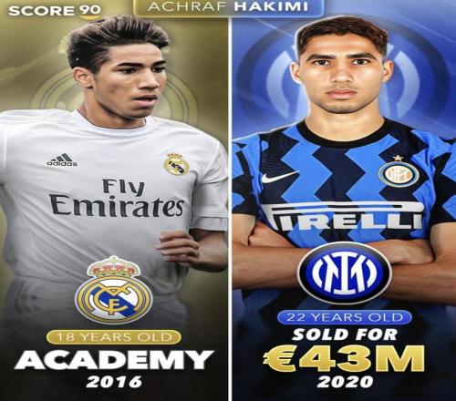 但從“回報效率”角度,哈基米更有代表性:18歲進入體係,22歲就能賣到4300萬歐元,國籍還是摩洛哥,這說明他在俱樂部層麵的即戰力和位置稀缺性非常強。對皇馬來說,這類邊路球員一旦成熟,往往能在很短周期裏變成高額轉會收入。