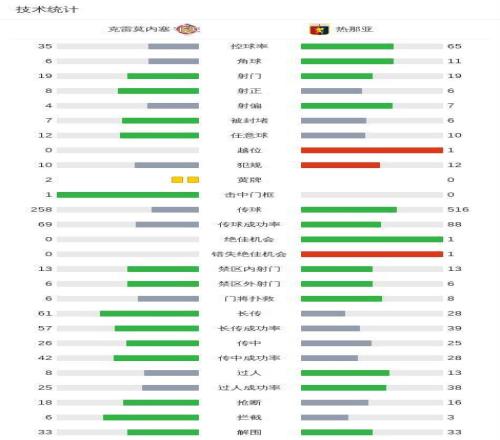 北京時間2月15日意大利足球甲級聯賽第25輪,克雷莫內塞主場迎來熱那亞的挑戰。全場比賽結束,兩隊均未攻破對方球門,最終克雷莫內塞0-0戰平熱那亞。