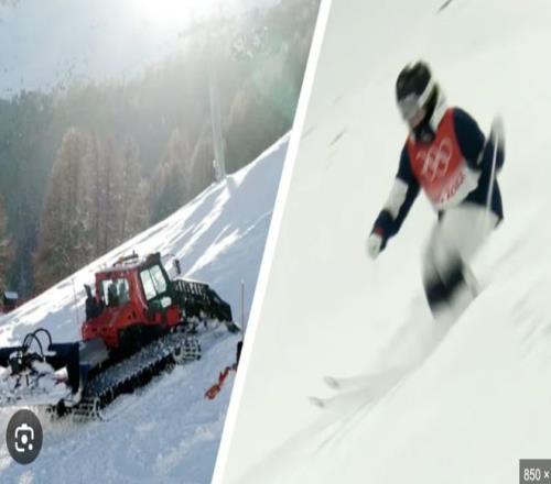 接下來是決定賽道質量的關鍵,專業團隊(教練和退役運動員)會利用滑雪板的側刃和雪鏟,在雪脊之間切削出流暢的S型槽位。通過反複的順坡滑行,把蘑菇的迎風麵處理得圓潤平滑,同時在背風麵的轉向區保留適量的鬆軟散雪,以幫助運動員在高速下滑中通過摩擦力控製速度。左右兩側的蘑菇形狀和間距必須盡可能一致,否則滑行者很難建立節奏。
