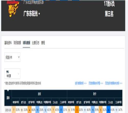 第一階段過後,廣東男籃的投籃分布,中距離占比僅為25.6%,籃下占比為33.8%,三分占比則高達40.5%。由此可見,外線投射是廣東隊的主要得分手段,球隊更強調外線進攻。但問題是,他們進攻端的三分命中率隻有33.1%,該數據僅排在聯盟第17位,整體效率很低。