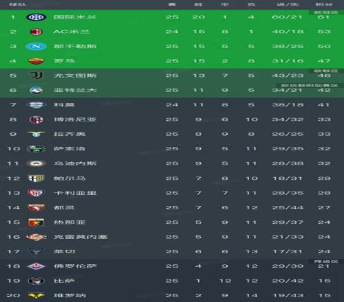 意甲最新積分榜