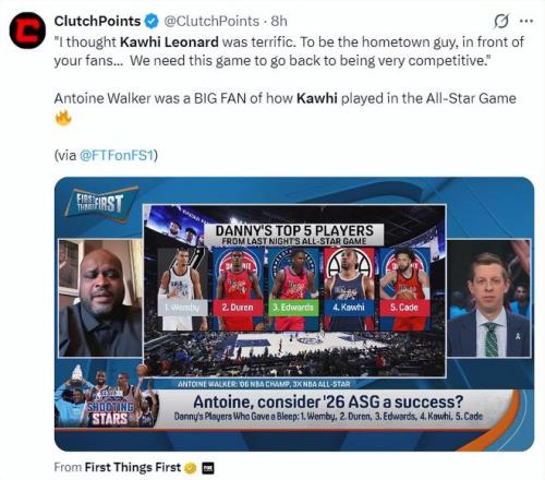 前NBA球員安托萬-沃克談到了小卡的表現:我覺得卡哇伊在全明星的表現非常好,在家鄉父老麵前為球迷貢獻一場精彩的表演,香蕉视频网址需要全明星重新變得具有競爭性。