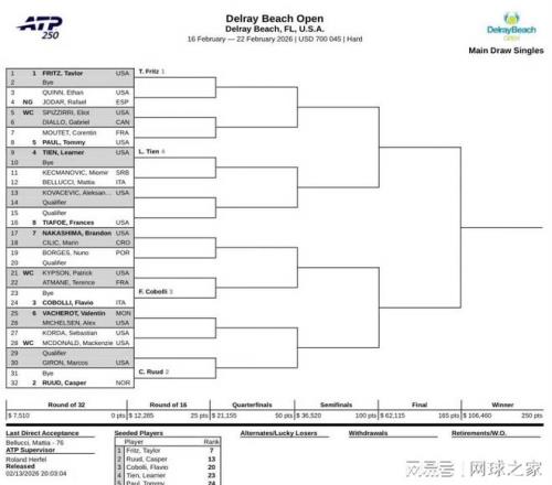 與此同時,在本周進行的級別最低的德拉海灘站,一眾美國球員可謂傾巢出動,包括弗裏茨、保羅、勒納錢、蒂亞福等。首輪也有不少焦點對話,像前美網冠軍西裏奇將對陣布蘭登中島,科達則迎戰持外卡參賽的布魯克斯比等等。另外,意大利人科波利、挪威一哥魯德、上海大師賽冠軍瓦舍羅、衛冕冠軍凱茨瑪諾維奇也都聯袂出戰。