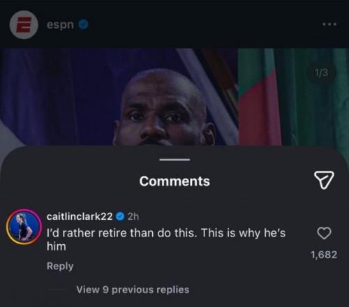 這個節目發出來後,說過詹姆斯是曆史第一人的女籃超巨克拉克就現身評論區,表示戒掉愛好的話,她寧願退役。克拉克這樣寫:我寧願退役也不會戒掉愛好!這就是詹姆斯之所以是詹姆斯的原因。