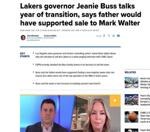 麵對這一話題引爆社媒,湖人小老板、總裁珍妮巴斯在接受CNBC采訪時,也公開給出回應。