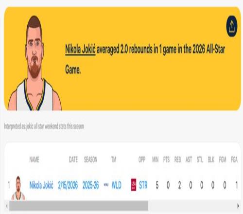 數據媒體StatMuse曬出了約基奇最近兩年全明星的數據,今年是5分鍾,1中0拿0分2籃板0助攻。