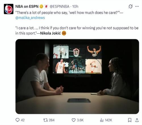 北京時間2月19日,約基奇做客ESPN的專訪節目,在節目中談到對競技體育/籃球的看法,他說道:我非常在意輸贏,如果你不在乎輸贏就不該從事這項運動。這隻是我的性格可能有點與眾不同,我熱愛籃球。