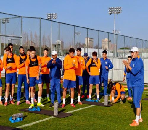 2月22日,山東泰山繼續在上海進行第三階段冬訓。從球隊現階段的訓練人員看,新賽季35人名單接近出爐,五外援陣容齊整,2000年及以後出生的球員人數達到20人,其中9名U21球員。按照安排,泰山隊將在23日和25日先後與上海申花、青島海牛進行熱身賽。