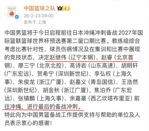 今天上午,中國男籃正式公布了世界杯預選賽第二窗口期的14人大名單,從這份大名單來看,在後場方麵,郭士強也是進行了補充,趙繼偉、趙睿、廖三寧等人都是名列其中。從趙繼偉再一次入選中國男籃大名單,也說明了,郭士強十分看好他的組織串聯能力。