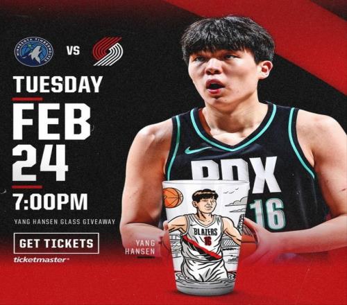 但隨後開拓者的一個決定,讓大家看到了他們火速找回楊瀚森的原因。就在今天,開拓者宣布,球隊將在下一場主場對陣森林狼的比賽中舉辦“楊瀚森玻璃杯之夜”。這是個什麽活動,開拓者介紹說,是指前5000名到場的觀眾,將獲得一個楊瀚森的紀念玻璃杯。同時開拓者官網和現場也將上售賣同款玻璃杯,售價是6.99美元。