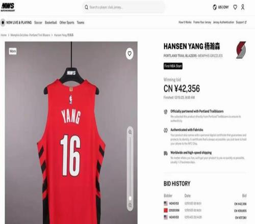 無獨有偶,就在“楊瀚森玻璃杯之夜”活動發布不到24小時後,開拓者再次發布一項商業決定:為了慶祝農曆馬年,開拓者將在官方商城限量發售楊瀚森中文銘牌球衣。根據效果圖顯示,這款球衣背後是書法書寫的楊瀚森中文名。關於這款球衣的售價,目前還沒有公布,但價格絕對不會低。楊瀚森夏季聯賽的球衣售價是238美元,折合人民幣是1641元,常規賽球衣分球迷版和球員版,球迷版售價是1059元,球員版售價是1863元,比東契奇、詹姆斯的球員還貴。