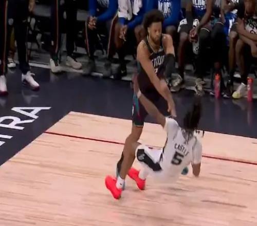 一開始放倒卡斯爾的康寧漢姆倒是沒有被吹罰技術犯規,有點奇怪。經過這樣一個插曲,馬刺隊打起精神,逐漸拉開分差,最終以114比103客場擊敗了活塞隊。