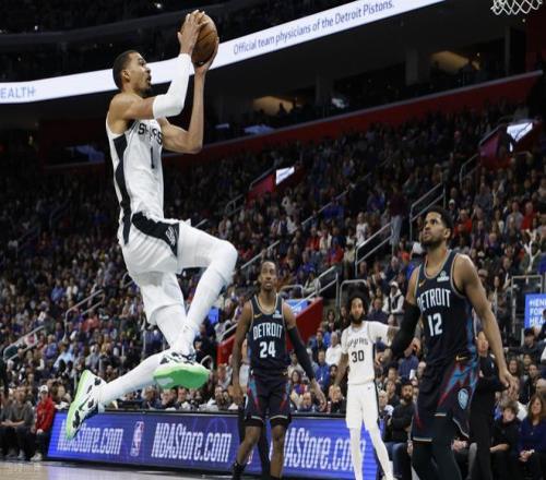 馬刺客場力克東部第一的活塞,本場文班亞馬再度展現恐怖統治力。上半場他投籃不佳,投籃9中2,三分3中1,罰球2中2,得到7分7籃板1搶斷1蓋帽。