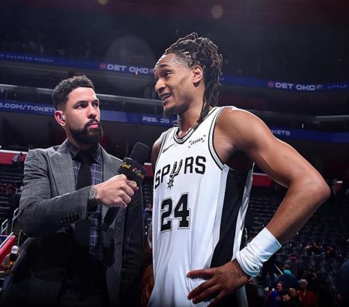 本場比賽中,馬刺的先發側翼大將德文-瓦塞爾(Devin Vassell)總算是打出了一場出色的表現。瓦塞爾全場出場36分19秒,投籃14中10,三分線外11中7,罰球2中1,得到了全場最高分28分外加2籃板4助攻1蓋帽的數據,還有1次失誤和2次犯規,正負值為+11。瓦塞爾在進攻端終於發揮出了自己在外線投籃方麵的能力,命中了大量的三分,展現出了應有的水準。除此之外,瓦塞爾也是能夠在傳球和組織方麵起到一定的作用,他在進攻端的功能非常全麵。瓦塞爾在防守端的表現也是值得肯定的,同樣是起到了一定的作用的。瓦塞爾在本場比賽中也算是將自己的特點完全發揮了出來,為球隊的勝利提供了巨大的幫助。