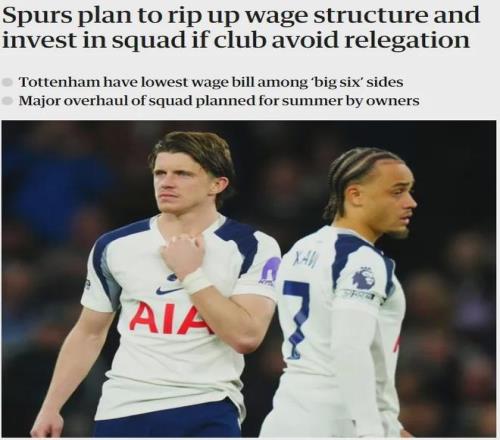 衛報記者MH消息,熱刺老板準備打破俱樂部僵化的薪資結構,假如本賽季能避免降級,那麽他們將在夏天來臨之前付諸行動。