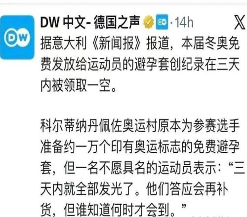 米蘭冬奧會剛開賽三天,據說組委會準備的一萬隻避孕套就被一掃而空,這速度直接刷新了奧運紀錄,讓網友直呼年輕運動員的荷爾蒙太旺盛了,可以想象組委會都汗流浹背了!