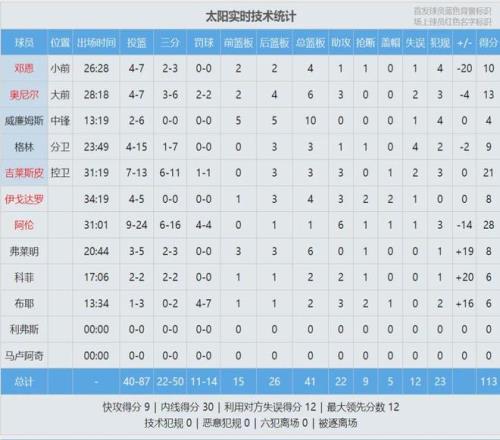 湖人替補僅得25分,太陽替補轟下56分,其中格雷森-阿倫獨得28分6助攻,一個人摧毀了湖人板凳席。太陽榜眼傑倫-格林手感冰涼:投籃15中4,三分7中1,僅得9分3籃板1助攻1搶斷4失誤。最近4場比賽,格林三分球合計33中5!