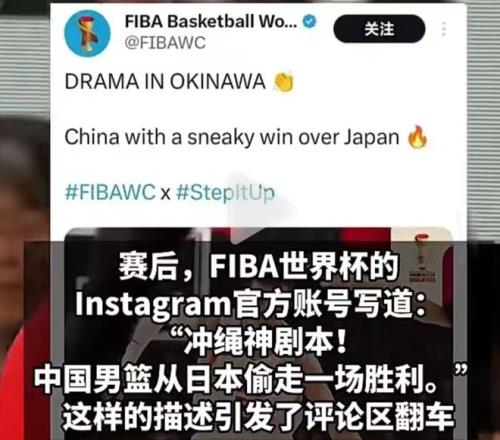 然而,讓人感到遺憾的是,中國男籃努力在客場擊敗日本隊,拿到比賽勝利,卻遭到了國際籃聯的調侃,在賽後,FIBA國際籃聯在網絡平台上是這樣寫道:衝繩的神劇本!中國男籃從日本偷走一場比賽勝利。