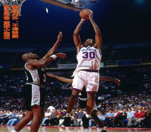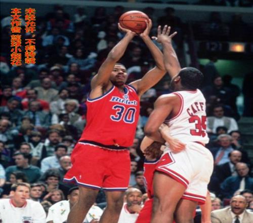 說起投籃,華萊士有個絕學,叫“直臂投籃”,那個時代標準的投籃是二段式投籃,講究的是三個90度,身體和大臂90度,大臂和小臂90度,出手後壓腕,手腕和小臂90度,但華萊士的投籃,是把球盡量遠離身體,抬到身體的最高點,兩隻胳膊盡量伸直,僅靠手腕的力量把球給撥出去。