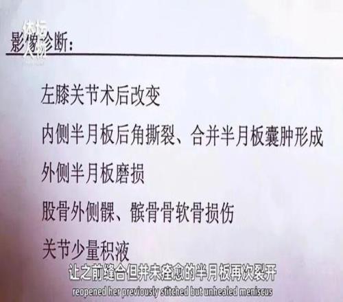 踝骨、髕骨、韌帶、關節,統統有傷,雙腿半月板已經碎片化,手術切除了70%半月板。