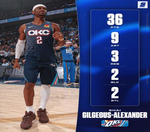全場比賽33分46秒,亞曆山大29中12,三分3中0,罰球13中12,拿到36分9助攻3籃板2搶斷2蓋帽,命中率41.4%,真實命中率51.8%,正負值+16。亞曆山大完完全全的躺贏一場,第四節不是卡魯索兩個三分早已輸球,加時賽關鍵1斷1上籃幫助球隊拿下勝利。