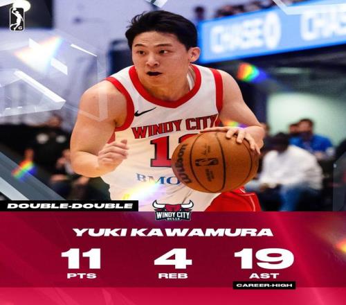 雙向合同球員河村勇輝在本賽季G聯賽場均可以送出11.3次助攻。