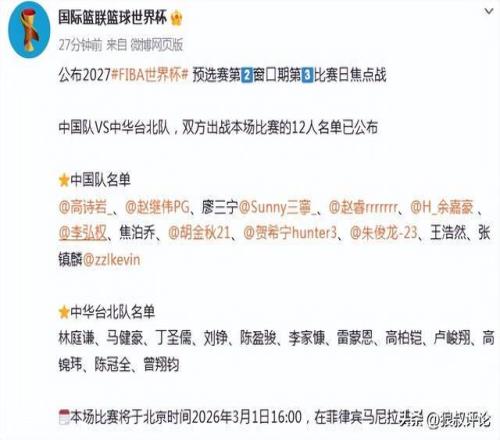 北京時間2月28日,男籃世預賽窗口期,中國男籃即將迎戰中國台北男籃。