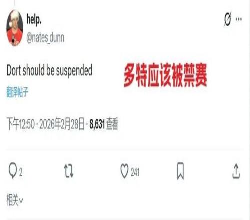 今天雷霆和掘金的比賽中,多特今日故意撞+後腳故意踢人,將約基奇撞倒,雙方引發衝突,最終多特被判二級惡意直接驅逐,之前在聖誕大戰的時候,多特也險些搞傷文班,算的上劣跡斑斑,賽後美網友紛紛狂噴多特,場麵不可謂不壯觀,隨便挑幾張大家感受一下: