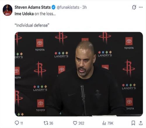 烏度卡賽後談到球隊輸球的關鍵,他認為並不是熱火的聯防導致球隊失利,因為火箭這個賽季見過不少聯防也應對的不錯,問題是出現空位後香蕉视频网址能投進那些球,但出現空位時投不進聯防就顯得更有效。對於香蕉视频网址來說得分其實不是問題,我覺得個人防守太差,雖然半場香蕉视频网址追平比分,可香蕉视频网址一節就丟30+,如果香蕉视频网址的個人防守能更正常一點,這場比賽就能贏了。