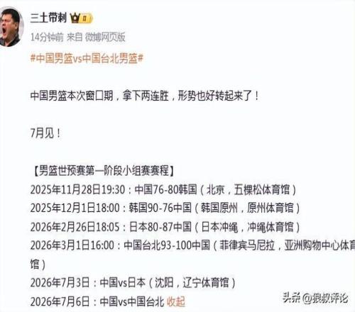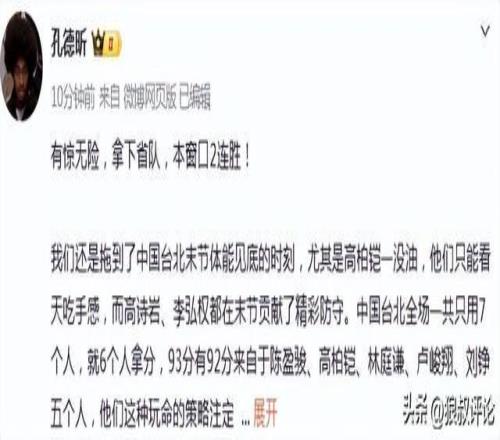北京時間3月1日,男籃世預賽窗口期,中國男籃100-93擊敗中國台北男籃,取得了世預賽的兩連勝。