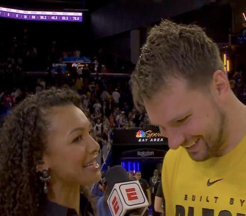 北京時間3月1日,NBA常規賽繼續進行,湖人129-101戰勝勇士。賽後,東契奇在現場接受了記者采訪。