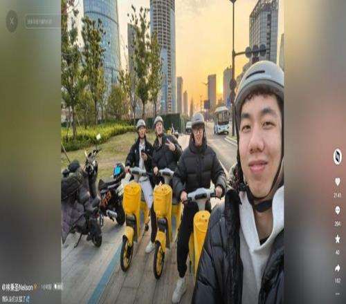 賽後,中國台北男籃球員、現浙江廣廈球員林秉聖更新社媒,曬出與俱樂部隊友朱俊龍、趙嘉仁、胡金秋騎共享電動車的合影,並配文:我隊友們太猛了。