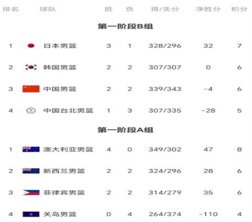 稍早時候結束的三場比賽,中國隊100-93逆轉中國台北隊,日本隊78-72擊敗韓國隊,新西蘭隊99-67大勝關島隊。