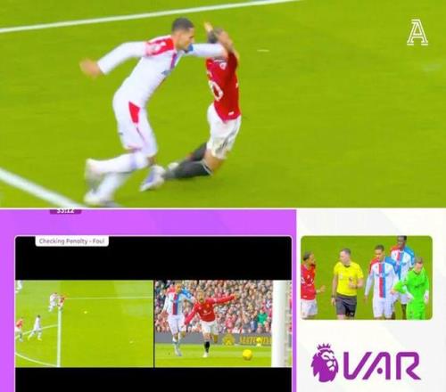 慢鏡顯示,拉克魯瓦在禁區外明顯拉拽了庫尼亞,不過,當曼聯6250萬英鎊前鋒踏入禁區的那一刻,水晶宮後衛的動作確實不大,隻是把手搭在了對方肩膀上。