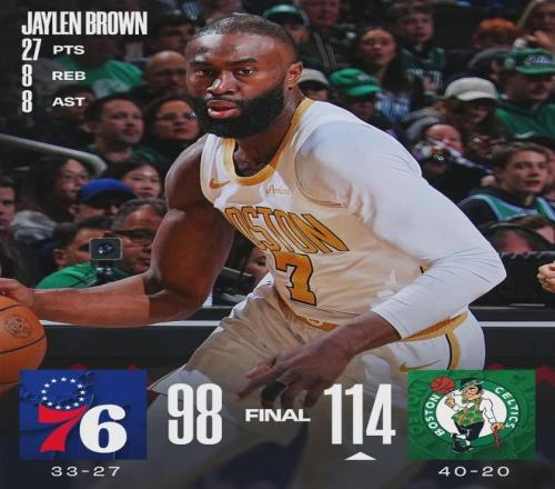 北京時間3月2日,NBA常規賽,凱爾特人114-98大勝76人。恩比德因右側腹斜肌拉傷,缺席本場比賽,而且接下來的兩場也打不了。保羅-喬治依然處在禁賽當中,預計3月26日才能複出。此役過後,76人33勝27負排名東部第六。