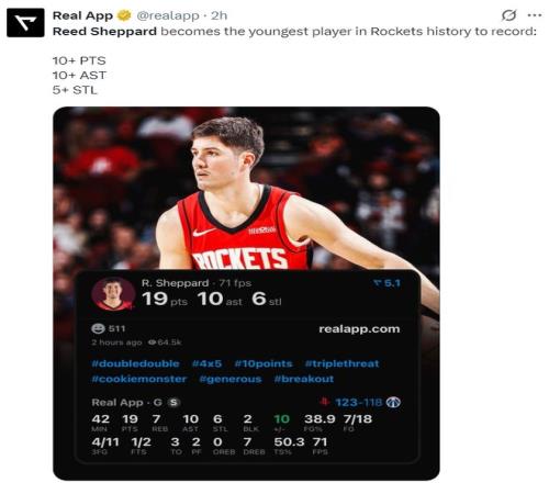 4.謝潑德成為最年輕拿到19+10+7+6+2數據的球員;