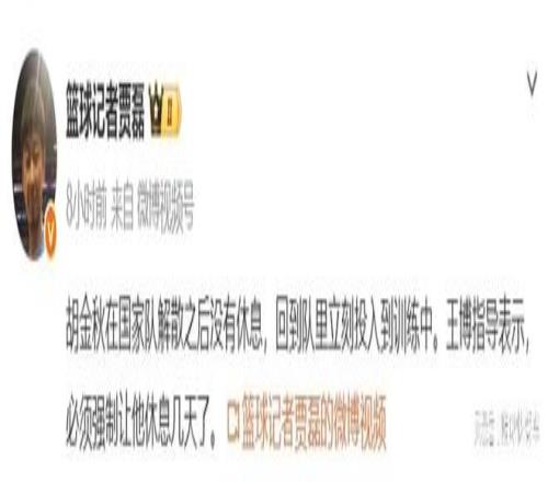 男籃世預賽結束以後,中國隊已經順利返回,帶著兩連勝的喜悅,中國隊球員終於可以暫時休息一陣了。由於距離CBA第二階段開賽還有一小段時間,中國隊球員也有了一小段寶貴的休息時間。當大部分球員開啟休息模式時,有一名國手卻已經開始訓練了。從國家隊回來以後,胡金秋放棄了休息的時間,便馬不停蹄的與廣廈匯合,迅速投入到備戰當中去。不過,這也讓廣廈主教練王博心疼壞了,他直接急了表示,要勒令胡金秋多休息幾天。