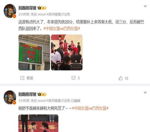 作者認為,本來中國女籃已經領先了快20分,結果替補上來由於得分效率太低沒有三分,反而被巴西女籃追了回來。這是末節場上局勢的轉折點,宮魯鳴作為主教練有兩大失誤。