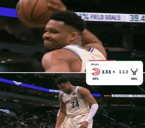 由於大比分落後,球隊眼看贏球無望,字母哥在比賽中怒砸籃球發泄不滿,就表情看,他心情非常不好!