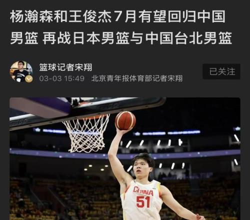 說完這第三大好消息,自然還有第二大好消息和第一大好消息。一個是FIBA官方最新亞太地區球隊實力榜上,中國男籃從上一期的第11上升至當下的第2,僅次於澳大利亞男籃;另外一個則是根據此前的報道,在NBA效力的中鋒楊瀚森、在NCAA打球的前鋒王俊傑以及留洋的林葳,都有可能在今夏重返國家隊。